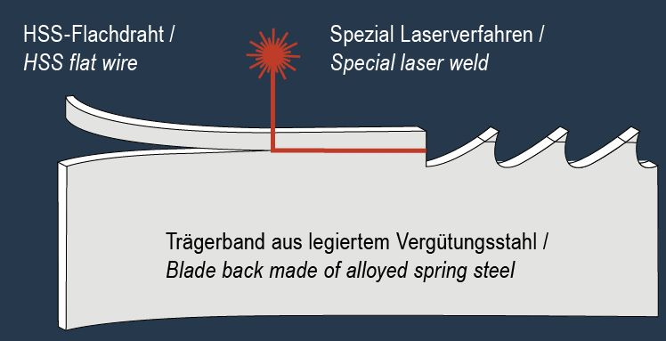 Neben Zahnform und Zahnteilung ist die exakte Schränkung eines Sägebandes ausschlaggebend für seine Leistung. Durch die anwendungspezifische Schränkung ergibt sich der korrekte Freischnitt des Sägebandes. Es verhindert das Einklemmen des Bandes – besonders wichtig bei problematischen Stählen.