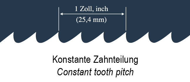 Entscheidend für den optimalen Einsatz einer Bi-Metall-Bandsäge ist die Wahl der richtigen Verzahnung für den zu zerspanenden Werkstoffquerschnitt. Dabei kann zwischen dem Standardzahn mit konstanter Zahnteilung oder dem Kombizahn mit variabler Zahnteilung gewählt werden. Zum vibrationsarmen Sägen von problematischen Werkstückabmessungen empfiehlt sich der Kombizahn mit variabler Zahnteilung der Zahngruppen. Schwingungsresonanzen werden gemindert und das Sägeband geschont.